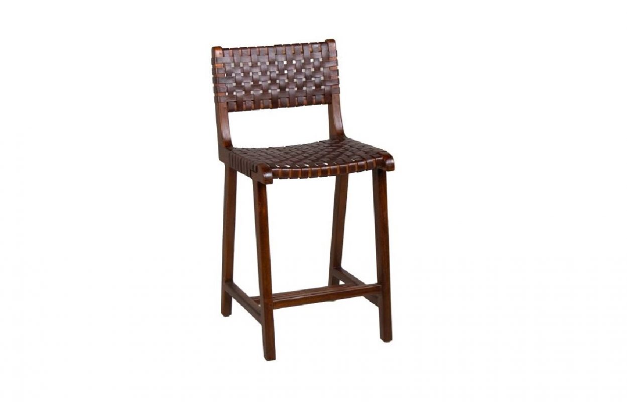 TABURETE BAR MADERA DE TECA Y PIEL MED: 43 X 50 X 90 CM ALTO