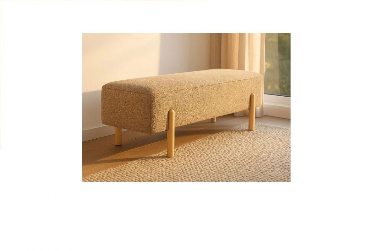 BANCO BAÚL TAPIZADO COLOR BEIGE Y PATAS METÁLICAS MED: 121 X 41 X 47 CM ALTO