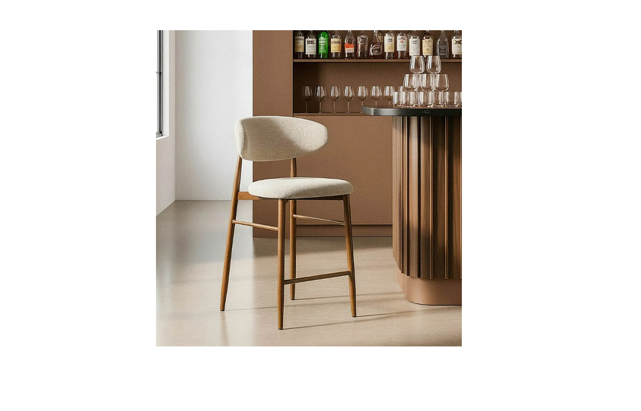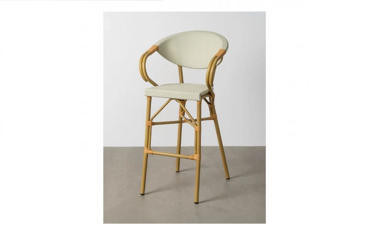 TABURETE TAPIZADO BEIGE REPELENTE AL AGUA Y PATAS METÁLICAS IMITACIÓN MADERA MED: 53 X 52 X 95 CM ALTO (ALTURA ASIENTO 65 CM) (TAMBIÉN CON ALTURA ASIENTO DE 75 CM)