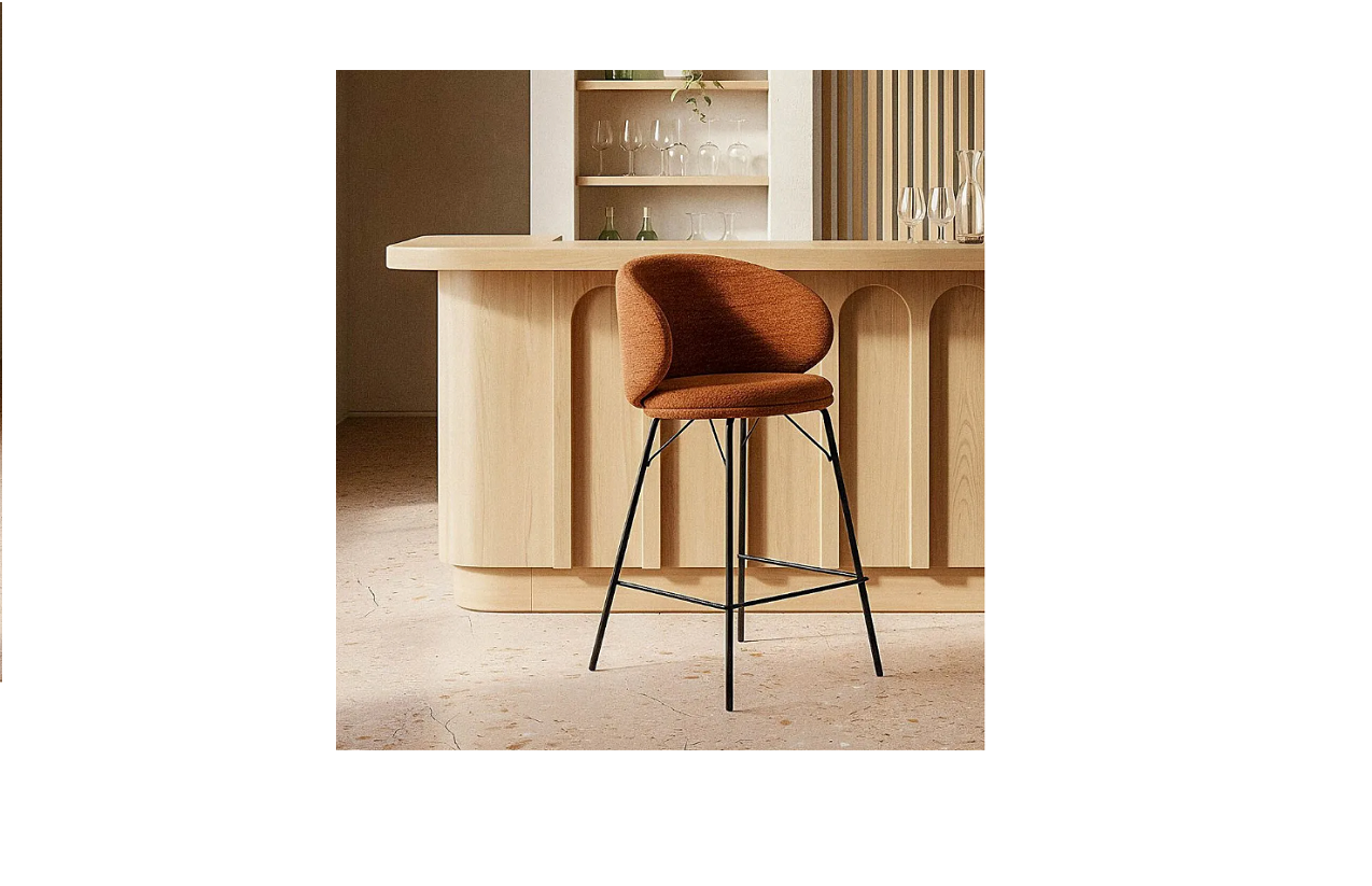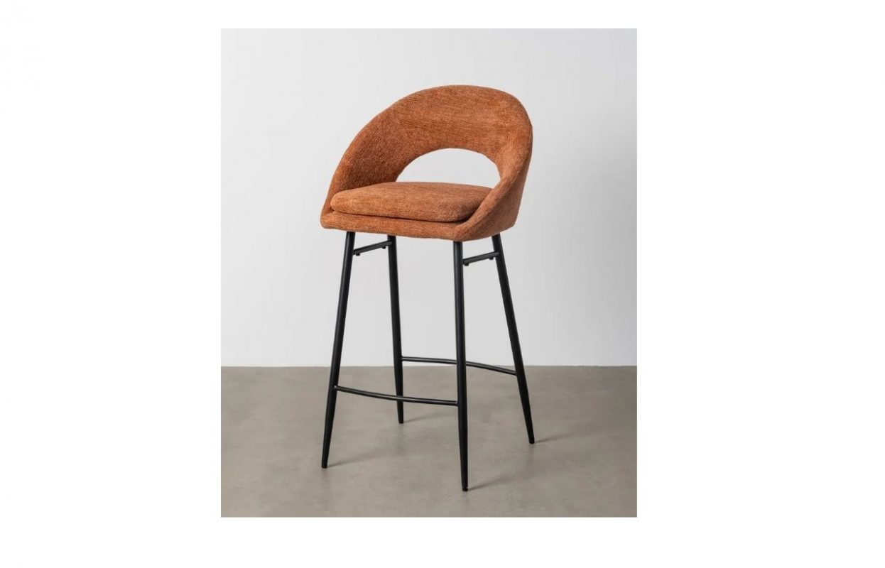 TABURETE TAPIZADO COLOR TERRACOTA Y PATA METÁLICA MED: 46,5 X 46,5 X 90 CM ALTO (TAMBIÉN EN COLOR MOSTAZA)