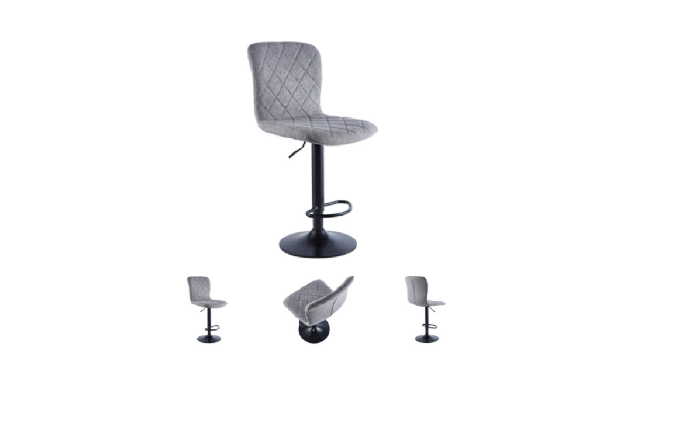 TABURETE GIRATORIO TAPIZADO COLOR GRIS REGULABLE EN ALTURA CON PIÉ METÁLICO NEGRO CON APOYAPIÉS