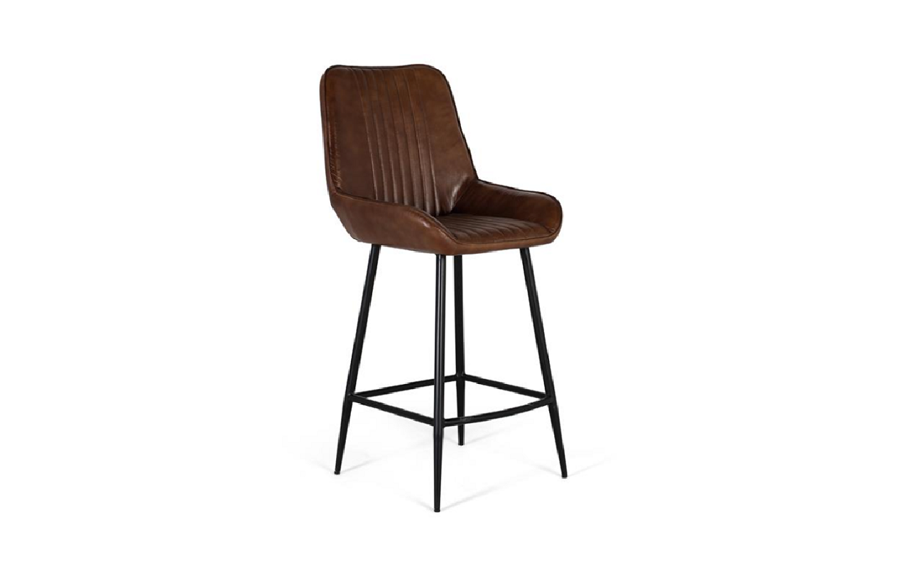 TABURETE TAPIZADO PIEL COLOR MARRÓN ACOLCHADO DISEÑO ERGONÓMICO Y PATAS HIERRO MED: 60 X 48 X 108 CM ALTO