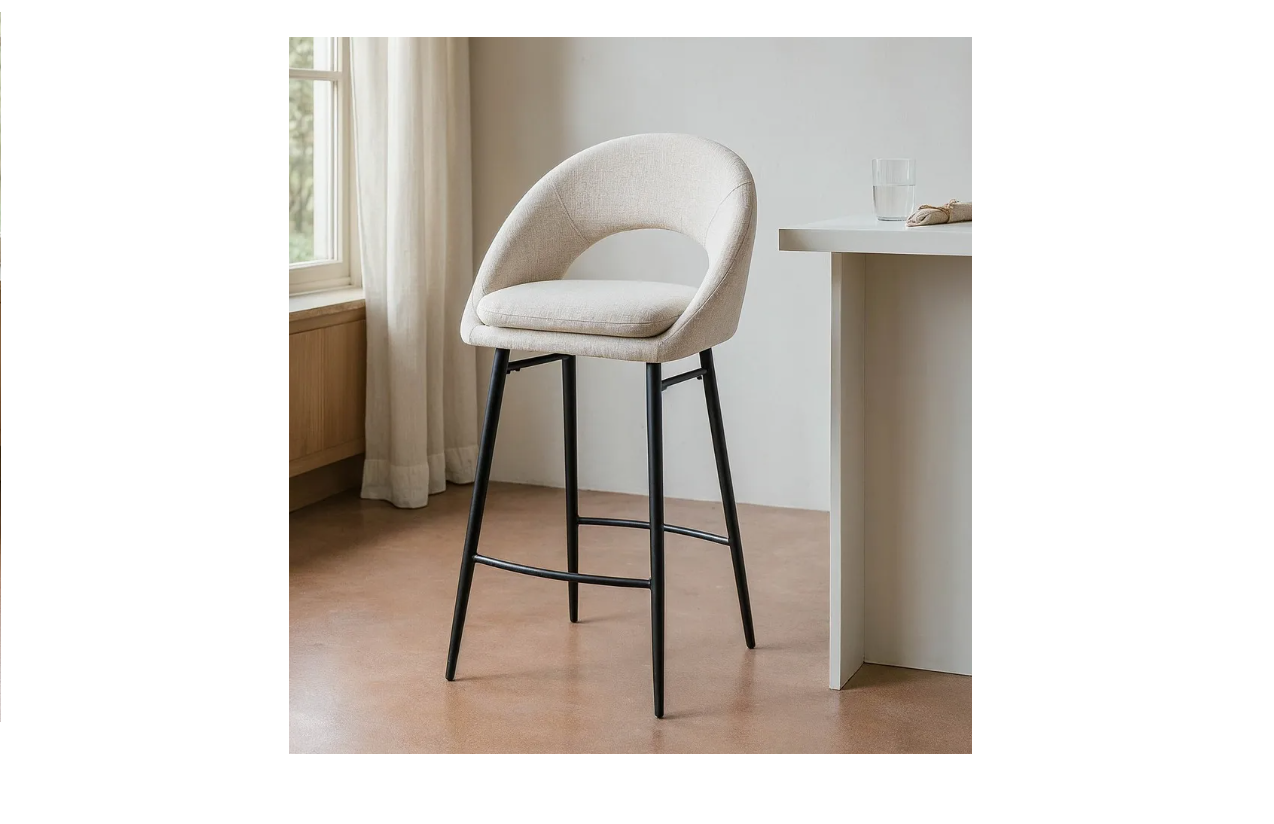 TABURETE TAPIZADO COLOR CREMA CON COJÍN DESENFUNDABLE Y PATAS METÁLICAS MED: 53 X 48 X 100 CM ALTO (TAMBIÉN EN COLOR ROSA Y CALABAZA)