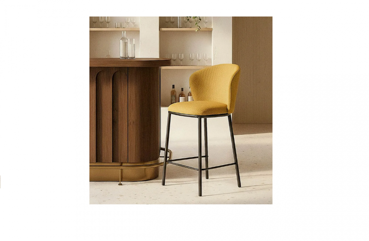 TABURETE TAPIZADO ESPIGA COLOR MOSTAZA Y PATA METÁLICA MED: 55 X 55 X 96 CM ALTO (TAMBIÉN EN COLOR BEIGE)