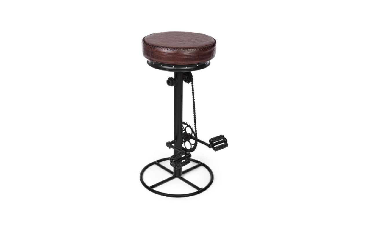 • TABURETE TAPIZADO PIEL COLOR MARRÓN ACOLCHADO DISEÑO ERGONÓMICO Y PATAS HIERRO MED: 60 X 48 X 108 CM ALTO
