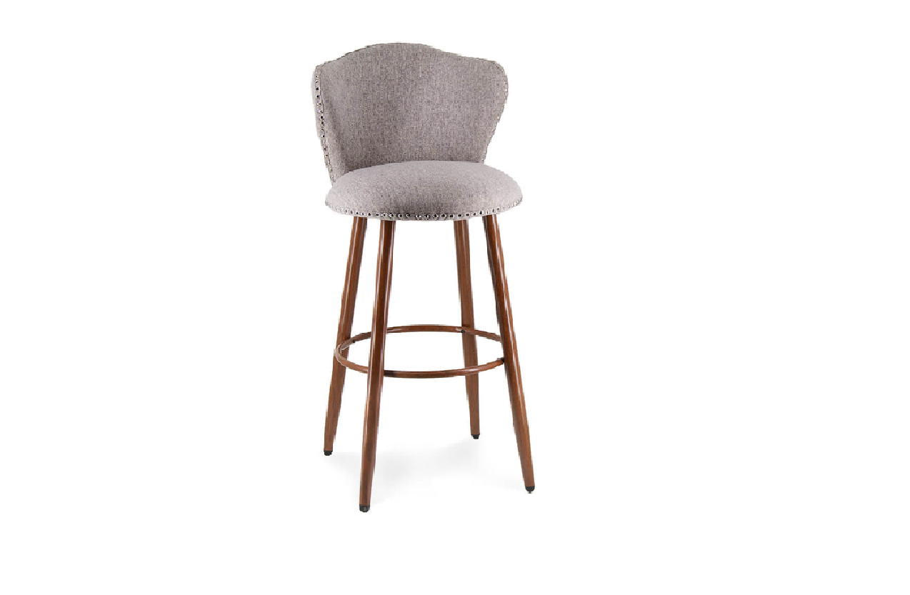 • TABURETE TAPIZADO LINO COLOR GRIS CON TACHUELA Y PATAS METÁLICAS COLOR MARRÓN MED: 45 X 55 X 102 CM ALTO