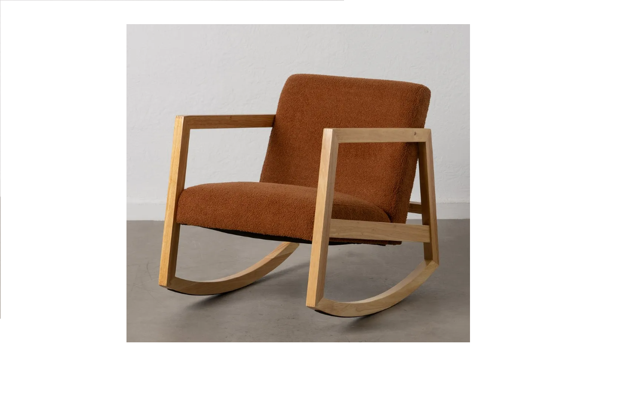Butaca balancín. Medidas 79 x 75 x 99 cm alto. Estructura madera de pino. Bastidor madera reforzado con cincha Nea alta resistencia. Respaldo fibra hueca 100%. Asiento poliuretano D-30 KG (firmeza media) desenfundable. Asientos tapizado tela Velvet (Antimanchas). Patas madera: blanco, haya, wengue, nogal y cerezo. -