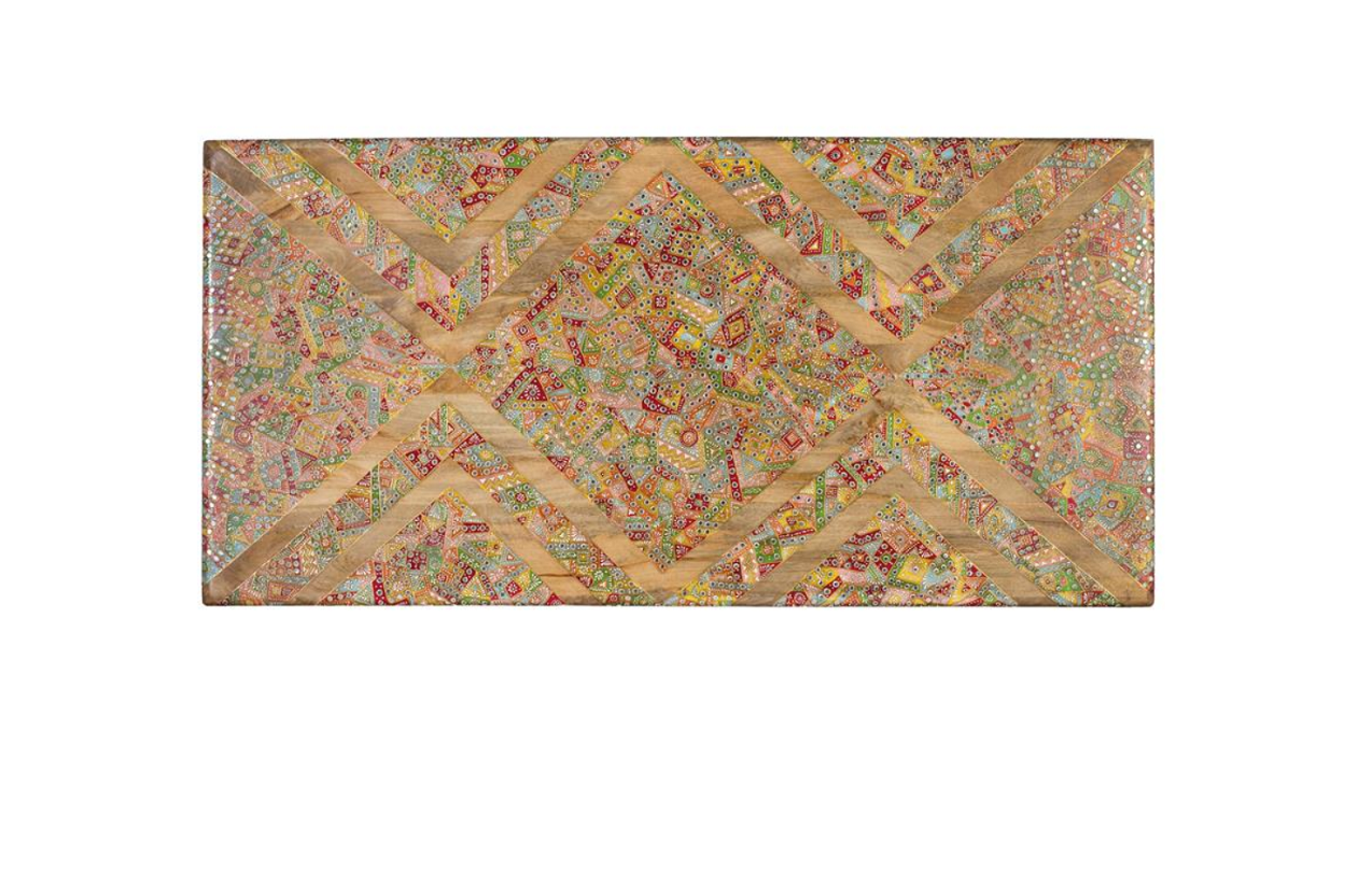CABECERO MADERA DE MANGO ESTILO ÉTNICO CON INCRUSTACIONES DE MOSÁICOS DE COLORES MED: 165 X 5 X 80 CM ALTO (MESILLAS A JUEGO REF. 2188 GYC)