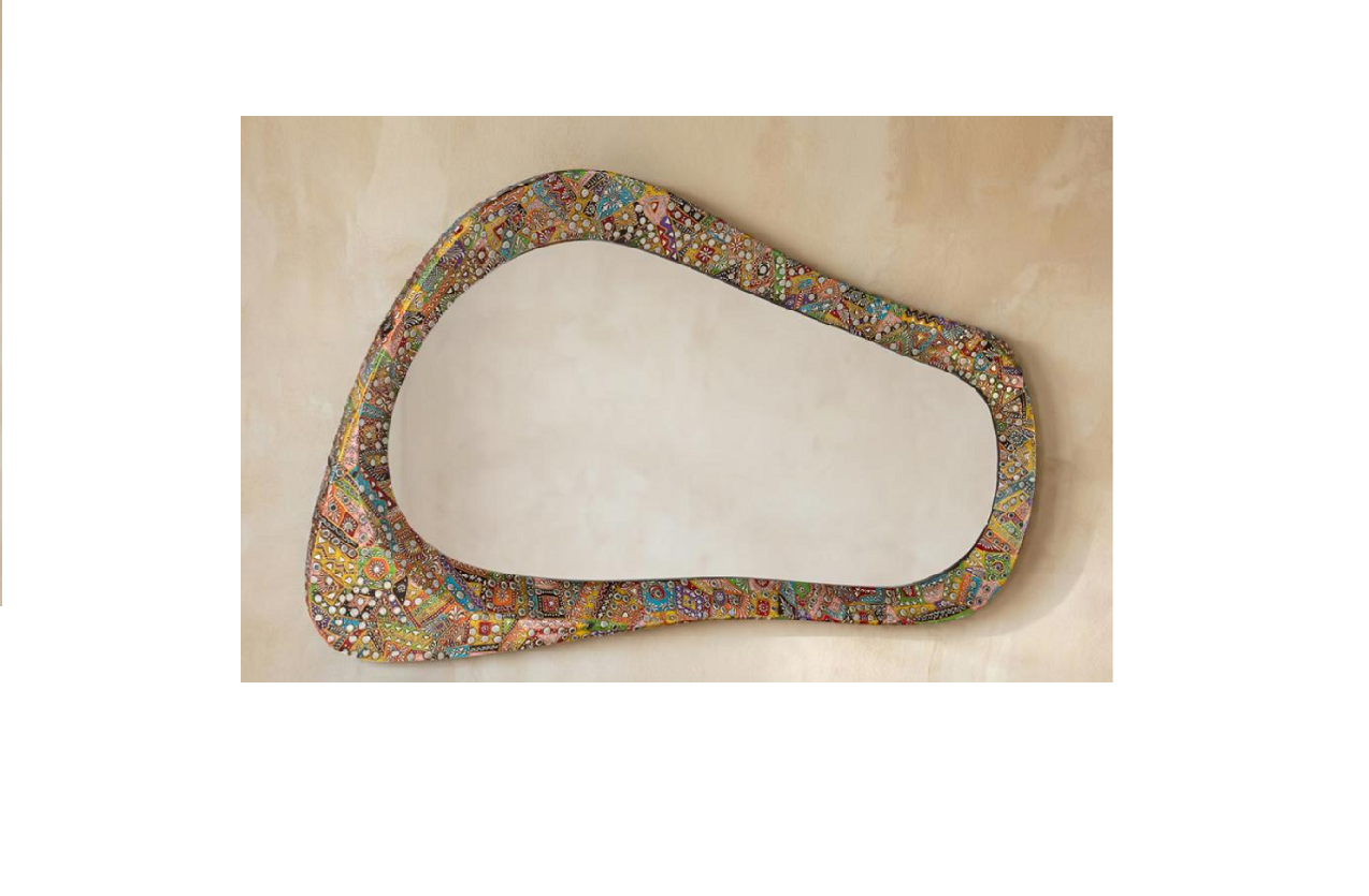 ESPEJO ESTILO ÉTNICO CON MARCO ARTESANAL CON INCRUSTACIONES DE COLORES DISEÑO IRREGULAR MED: 120 X 7,5 X 68 CM ALTO
