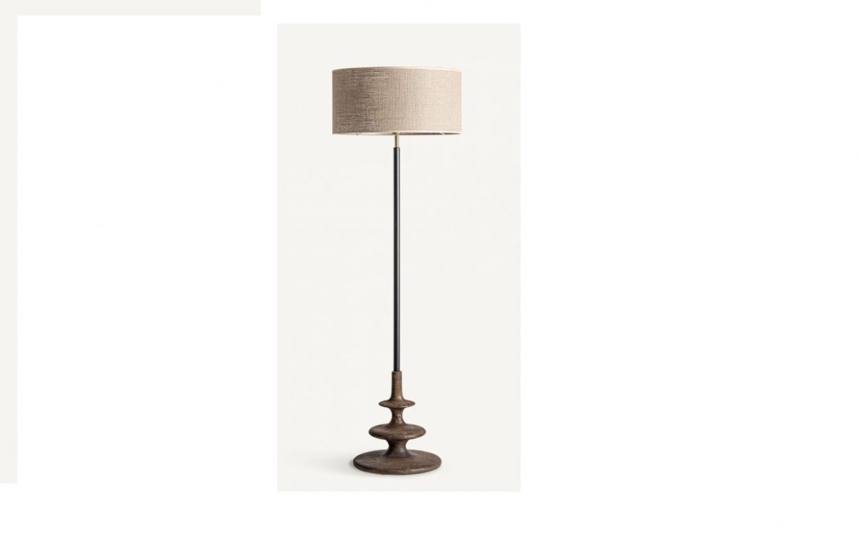 LÁMPARA DE PIÉ ESTILO COLONIAL MADERA DE MANGO COMBINADA CON HIERRO Y YUTE MED: 50 X 50 X 160 CM ALTO