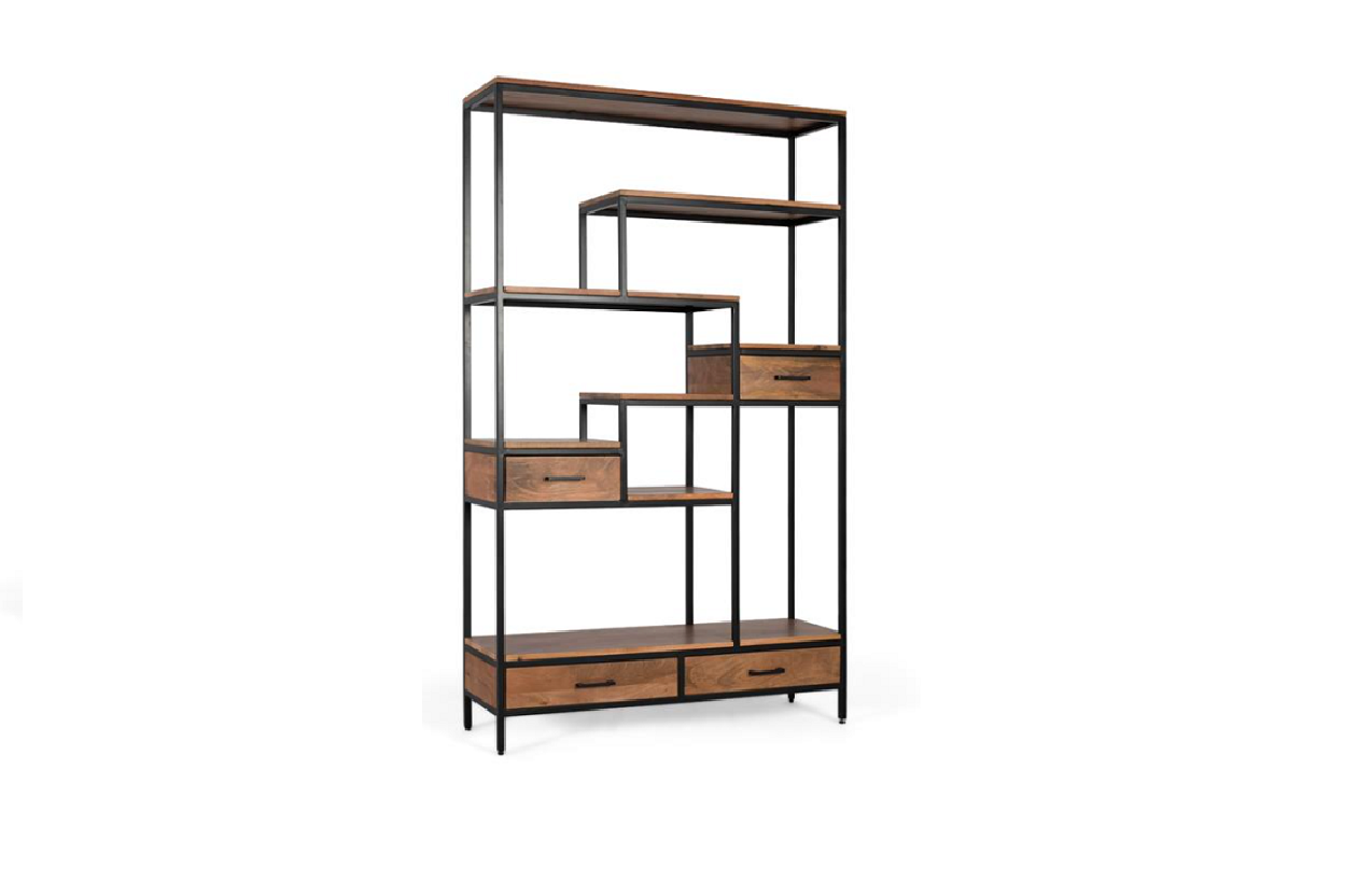 LIBRERÍA 4 ESTANTES MADERA DE MANGO Y ACERO MED: 150 X 35 X 180 CM ALTO