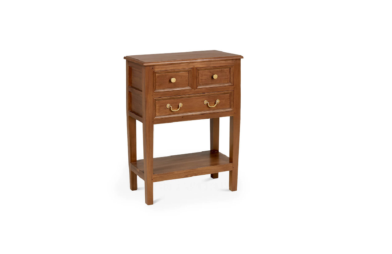 • MESITA AUXILIAR 3 CAJONES 1 ESTANTE MADERA DE CAOBA MED: 65 X 35 X 83 CM ALTO