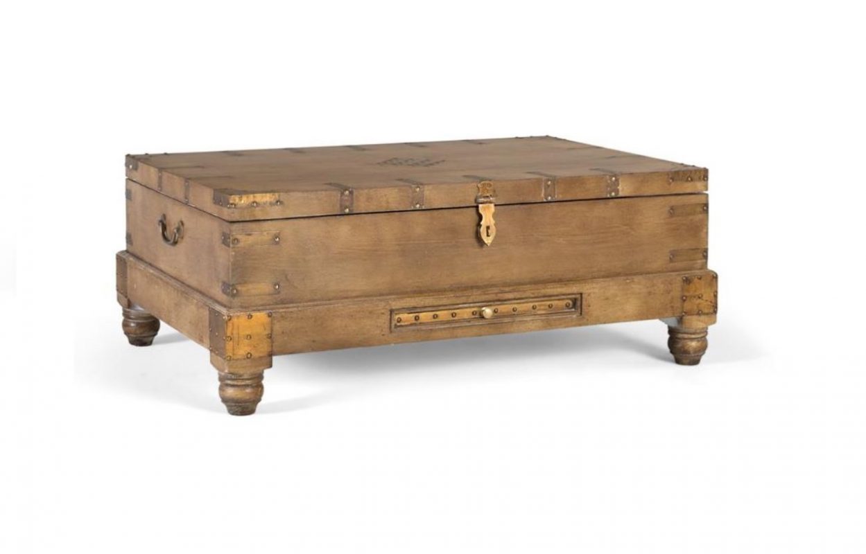 MESA DE CENTRO - BAÚL 1 CAJÓN MADERA DE MANGO CON DETALLES EN BRONCE MACIZO ESTILO RÚSTICO MED: 105 X 70 X 40 CM ALTO