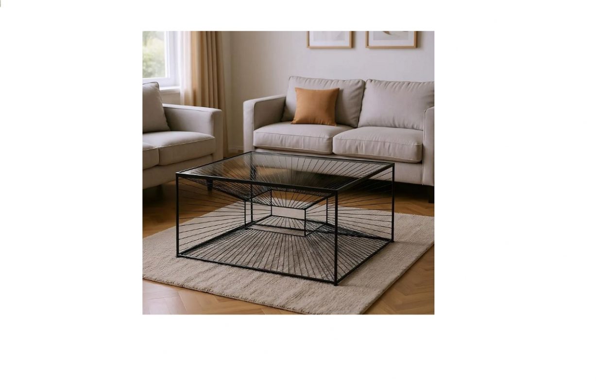 MESA DE CENTRO ALUMÍNIO COLOR NEGRO Y PATAS DE HIERRO NEGRO MED: 80 X 80 X 35 CM ALTO