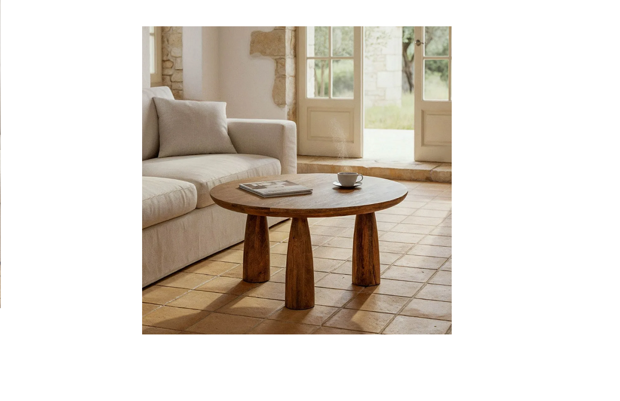 MESA DE CENTRO MADERA MACIZA DE MANGO CON SUS VETAS Y NUDOS ORIGINALES CON ANTIDESLIZANTES PARA PROTEGER EL SUELO CONTRA RALLADURAS MED: 80 X 80 X 37 CM ALTO