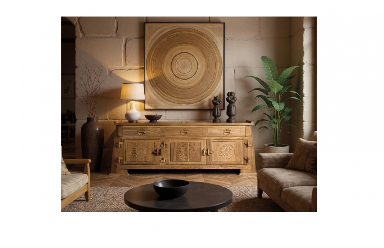 MUEBLE T.V. 3 CAJONES GRANDES MADERA TALLADA / HIERRO Med: 180 x 40 x 55 cm alto