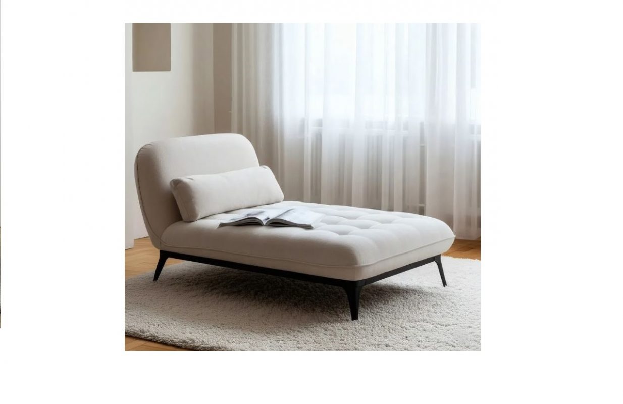 CHAISSELONGE TAPIZADO COLOR CREMA Y PATAS METÁLICAS NEGRAS RELLENO FOAM CON COJÍN RIÑONERA MED: 90 X 168 X 82 CM ALTO (TAMBIÉN EN COLOR TAUPÉ)