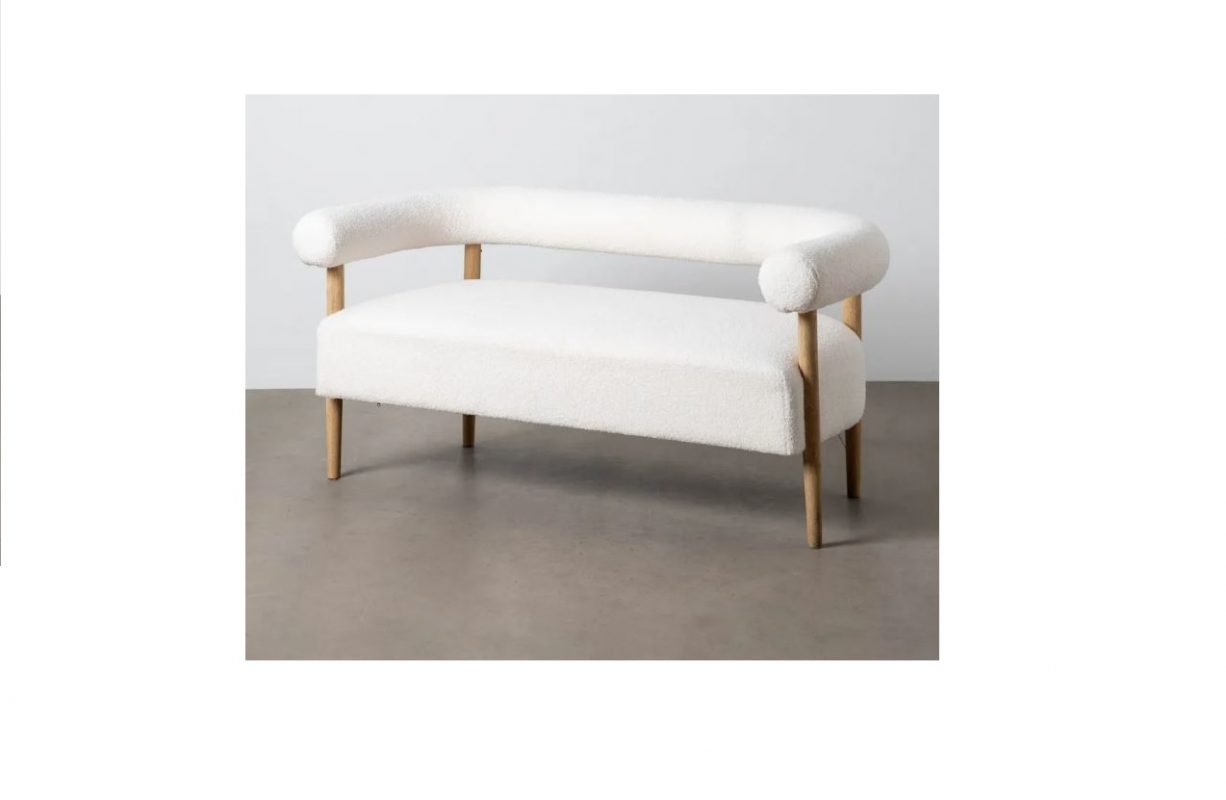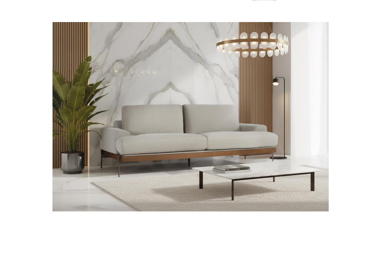 SOFÁ 2 PLAZAS TAPIZADO COLOR CRUDO Y ESTRUCTURA Y PATAS MADERA DE ROBLE ESTILO MINIMALISTA MED: 200 X 105 X 85 CM ALTO
