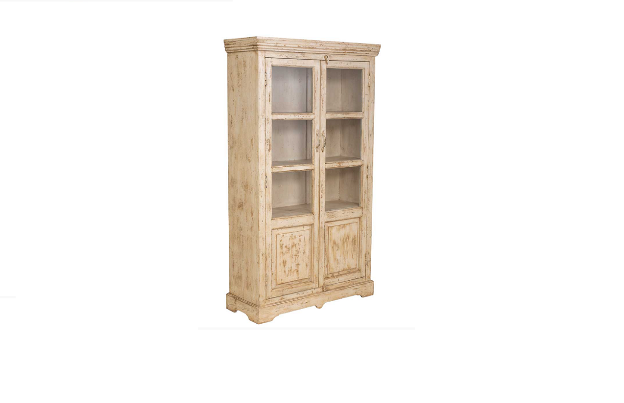 VITRINA 2 PUERTAS MADERA DE MANGO ACABADO BEIGE MED: 105 X 40 X 180 CM ALTO