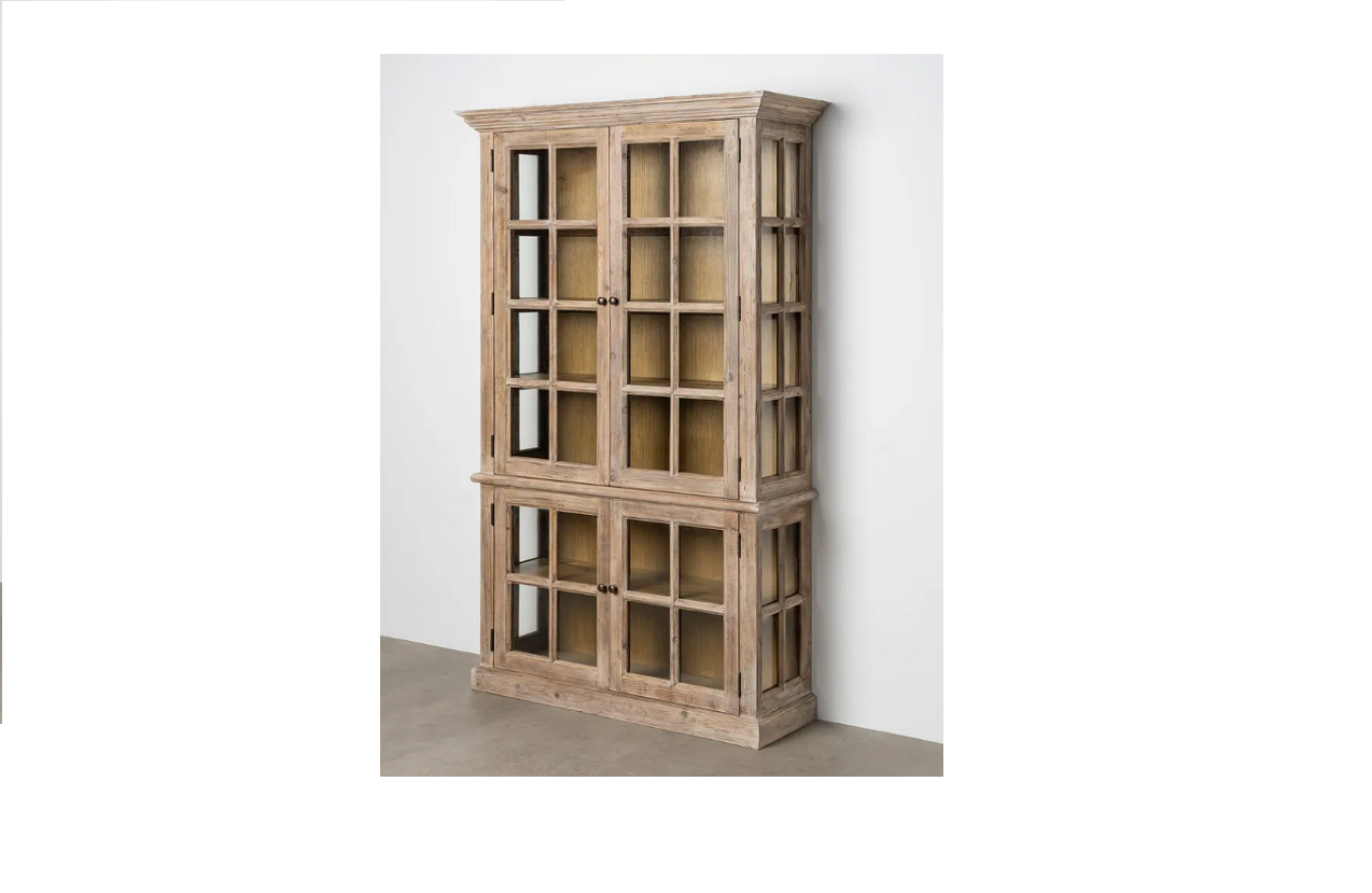 VITRINA 12 PUERTAS ESTILO RÚSTICO MADERA DE MANGO RECICLADO / CRISTAL TIRADORES BRONCE ENVEJECIDO MED: 184 X 38 X 215 CM ALTO